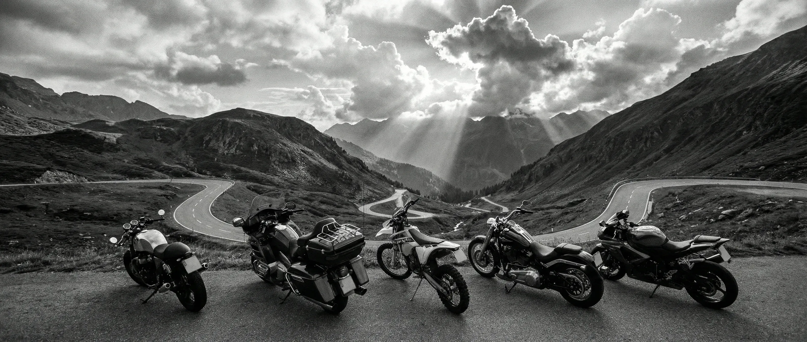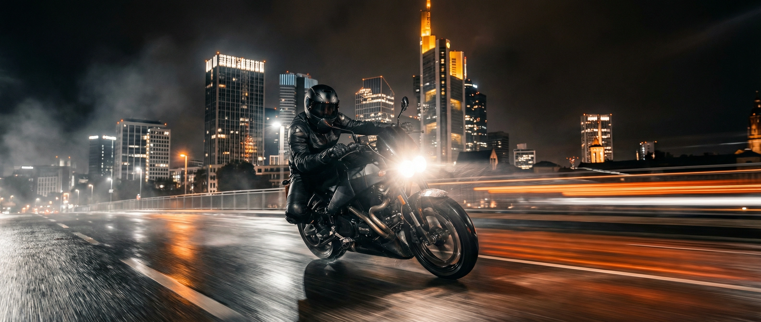 Motorradverleih, geführte Touren und Custom Parts — mit Sitz in Frankfurt am Main. Jede Miete beinhaltet eine tägliche Vollkaskoversicherung.